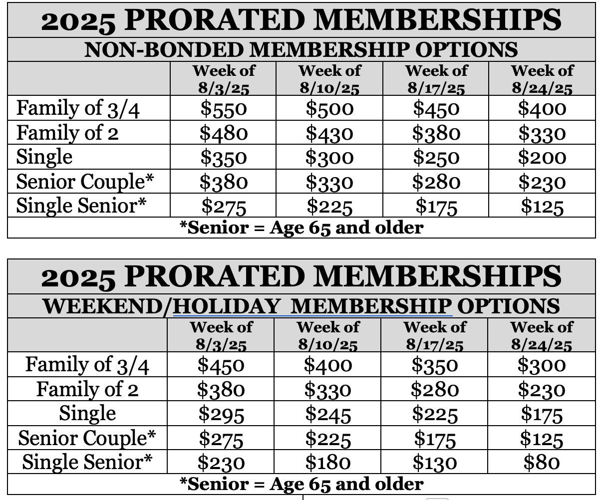 PRO-RATED MEMBERSHIPS NOW AVAILABLE FOR AUGUST!